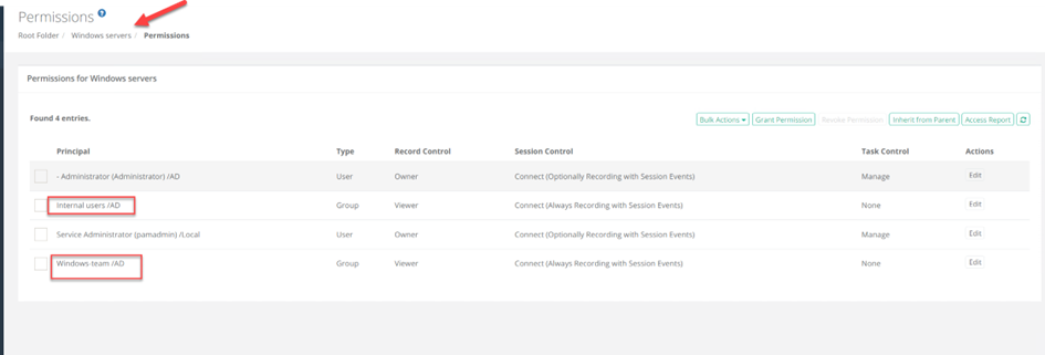 Organizing your resources in folders isn’t just a neat way to keep track of where your resources are, but it gives you the ability apply workflows, session control, tasks, and the ability to orchestrate access to which users or groups that have access to certain resources, on a folder level, and all of the above will be inherited to all of the resources in that folder. Since we have integration to AD or Entra ID, or even both, we can assign permissions on a group level. When you add a new resource into that folder, all the settings mentioned above is inherited and applied to that resource.
