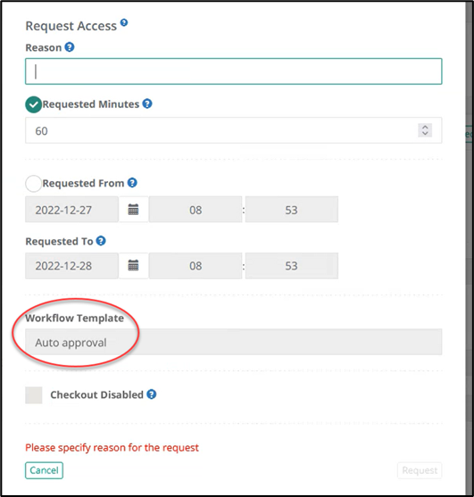 The approval of the request could be setup on various ways with different conditions depending on the type of resources, users or the actual time of the day. Typically, we don´t want to interfere with the users, making them wait on their request being accepted, so we use auto-approval for internal users during business hours. However, if it´s outside of business hours, or if it´s an external consultant we might want to have someone to approve the request. It is also possible to have four eyes setup. This is useful if it´s a really sensitive resource, or if the request is made on an unusual time, it might be a good idea if multiple people can verify that this request is okey to approve.
