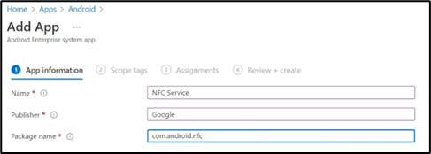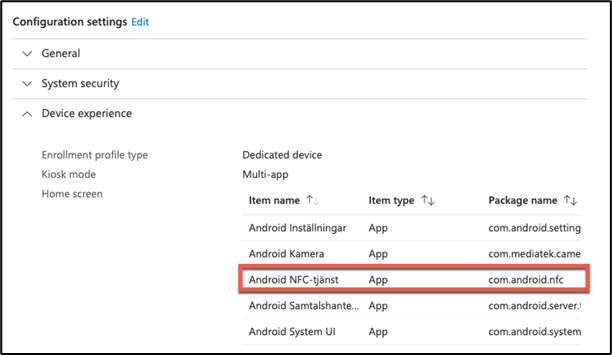 There are a few android components that are crucial for Imprivata to work and to get the intended workflow. One of them is the NFC-reader that shouldn’t be restricted in any way to be able to use the ID-card or tag to tap´ in. If we use a kiosk-mode that are intended to restrict the device, you might have to pull some tricks out of your sleeve. Specifically, if you use Intunes managed home screen, the NFC-reader is typically not allowed to run in the background. To solve this problem, create an android enterprise application by doing the following:
